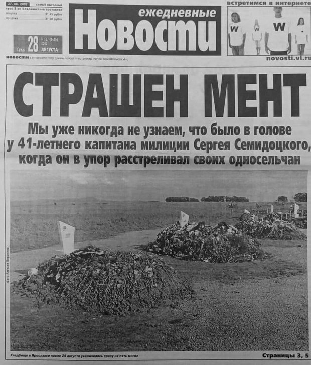 Если какой-нибудь историк вздумает досконально изучить события, произошедшие в поселке Ярославский (а именно там и произошло нападение), то он столкнется с колоссальной нехваткой информации. Нет даже уголовного дела по данному случаю – дело в том, что капитан Семидоцкий (фамилия убийцы) сразу после стрельбы попытался покончить с собой, а спустя сутки скончался в больнице. Дело, разумеется, из-за смерти фигуранта, было прекращено, а спустя 5 лет отправилось в макулатуру. Сохранить его для истории никто не догадался – да и вряд ли думал об этом.