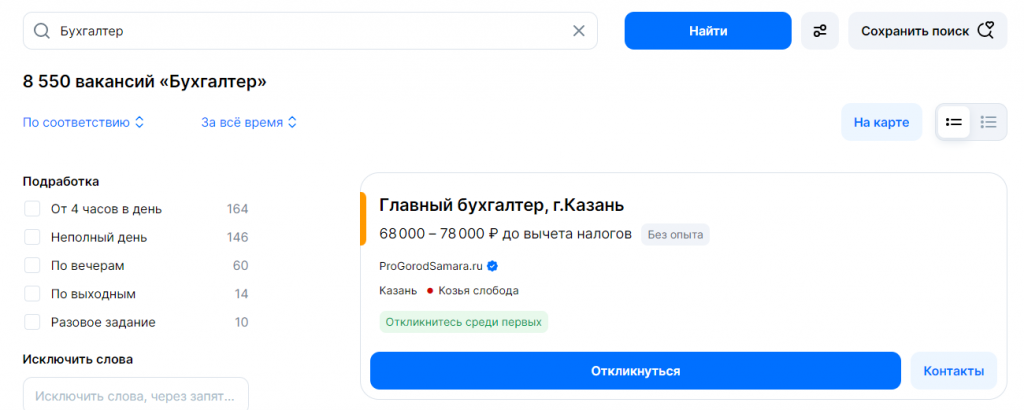 На конец августа 2024 года на hh.ru более 8500 вакансий бухгалтера без опыта работы.