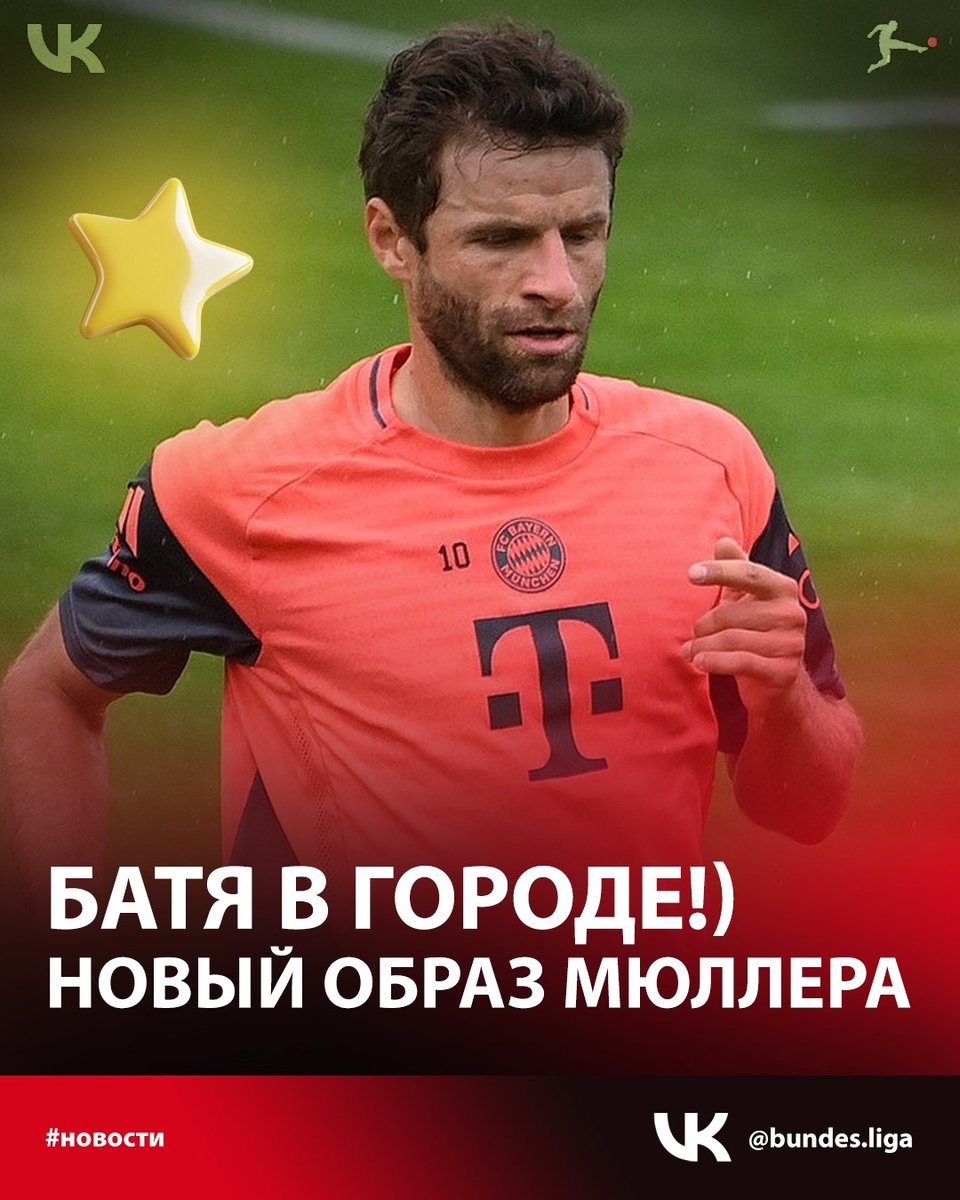 Батя в городе! 🤣 Новый образ Мюллера с бородкой 🧔🏻 Томас Мюллер на тренировочной базе "Баварии" во время международного перерыва. ✍ Напомним, бывший игрок мюнхенской «Баварии» подписал контракт с клубом североамериканской Главной футбольной лиги (MLS) «Ванкувер Уайткэпс». Соглашение с 35‑летним полузащитником рассчитано до конца сезона-2025 в MLS с возможностью продления ещё на год.