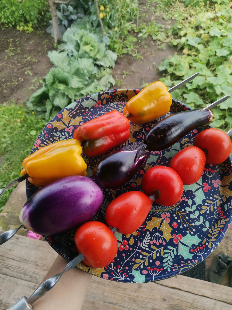 Я очень люблю этот салат. Но всегда его готовит мама. Ко мне медленно приходит осознание, что я теперь уже не ребёнок и могу себе позволить такие "шалости". В этом году я решила рискнуть и приготовить горячий салат без помощи взрослых. Я не знаю, сарказм это или нет, но иногда моя душа отказывается взрослеть и сдаёт заднюю лет на 15, а то и двадцать. Но паспорт и надпись на кремушке 25+ напоминают о реалиях жизни. Ладно. 30+. Вот уже и теплица своя имеется, заготовки делаются каждый год новые. Даже на святое замахнулась - помидоры продавать начала. А теперь вот еще и горячий салат. Посмотрите на эти краски. Ну разве это не бальзам для глаз? Есть тут дяденька такой, не помню фамилию, зовут Сталик, он раньше на НТВ в дачном ответе шашлыки преподавал. Вот тут его блог мне тоже попадался. До чего же красиво он делает свои мангальные блюдА. Заразное такое желание - делать красиво. Вот тут я сейчас похныкала, что у меня всё еще нет собственной беседки с каменной печью и мангальной зоной.