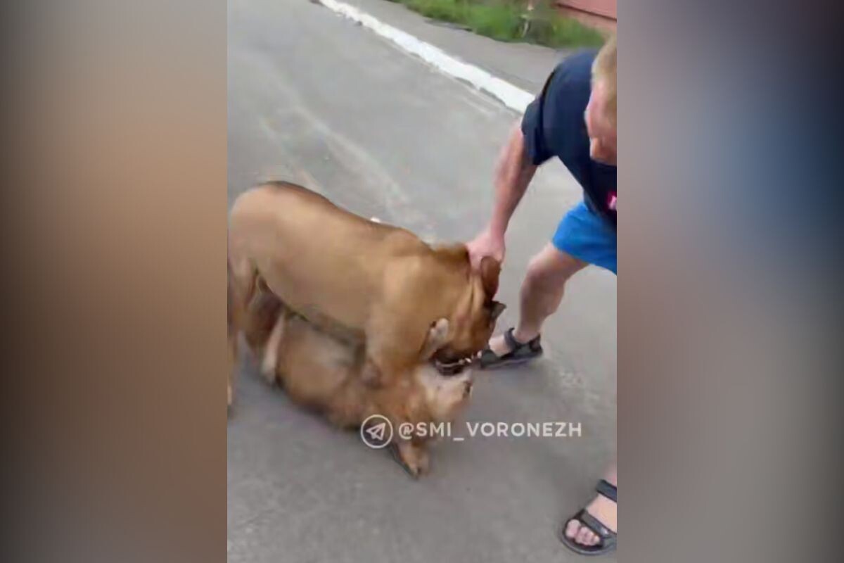 В Воронеже домашняя собака без поводка и намордника напала на бродячую