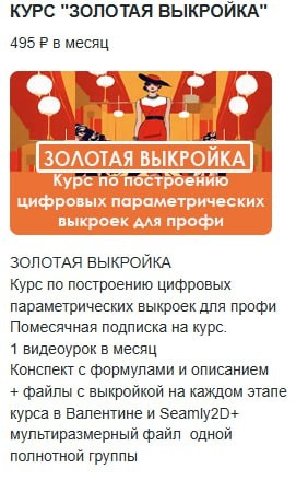 📫📌Новости канала Фэшн Патрон. Создала новый уровень подписки🎯 на бусти блоге "Золотая Выкройка". Эксклюзивная подписка с видеоуроками, файлами и конспектами только с курса. ✅Будет выходить 1 видео в месяц и сможете скачивать соответствующие файлы для открытия и редактирования в Валентине и Seamly2D. ✅Конспект в формате пдф с формулами для копирования. ✅ Ну и конечно же, личные консультации со по любому вопросу. 🚨 По экономной цене только 495 рублей в месяц. 🙋🏻♀️Подписаться здесь : https://boosty.to/fashionpatron.ru ⏰ P.D. при подписке в этом месяце будут доступны все видеоуроки, записанные до сегодняшнего дня, потом закрою остальные, и будут доступны материалы только одного месяца,т.е. месяца подписки. Поспешите воспользоваться акцией