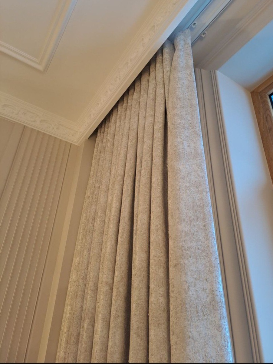 Способ крепления — не мелочь, а решение, от которого многое зависит Прежде чем выбрать ткань, стоит понять: а как штора будет крепиться? ▪️ Есть ли ниша? ▪️ Есть ли вынос подоконника? ▪️ Планируется ли закладная? ▪️ Или карниз уже установлен — и надо разобраться, что с ним можно сделать? Потому что часто именно это определяет решение: — карниз под люверсы крепится к стене, а не к потолку — значит, в нишу он не подойдёт; — карнизы от застройщика бывают установлены так, что с ними просто невозможно работать — приходится менять полностью. Прежде чем выбирать ткань — определяемся со способом крепления Вот основные варианты, с которыми я чаще всего работаю: -Шторная лента Классика. Аккуратно, универсально Крепится на крючки Подходит для большинства карнизов. Важно правильно рассчитать коэффициент — чтобы складки смотрелись ровно -Люверсы Крупные кольца, в которые продевается круглый карниз. Смотрится геометрично, волной. Требует идеально ровной длины. Не подходит для ниши — только настен