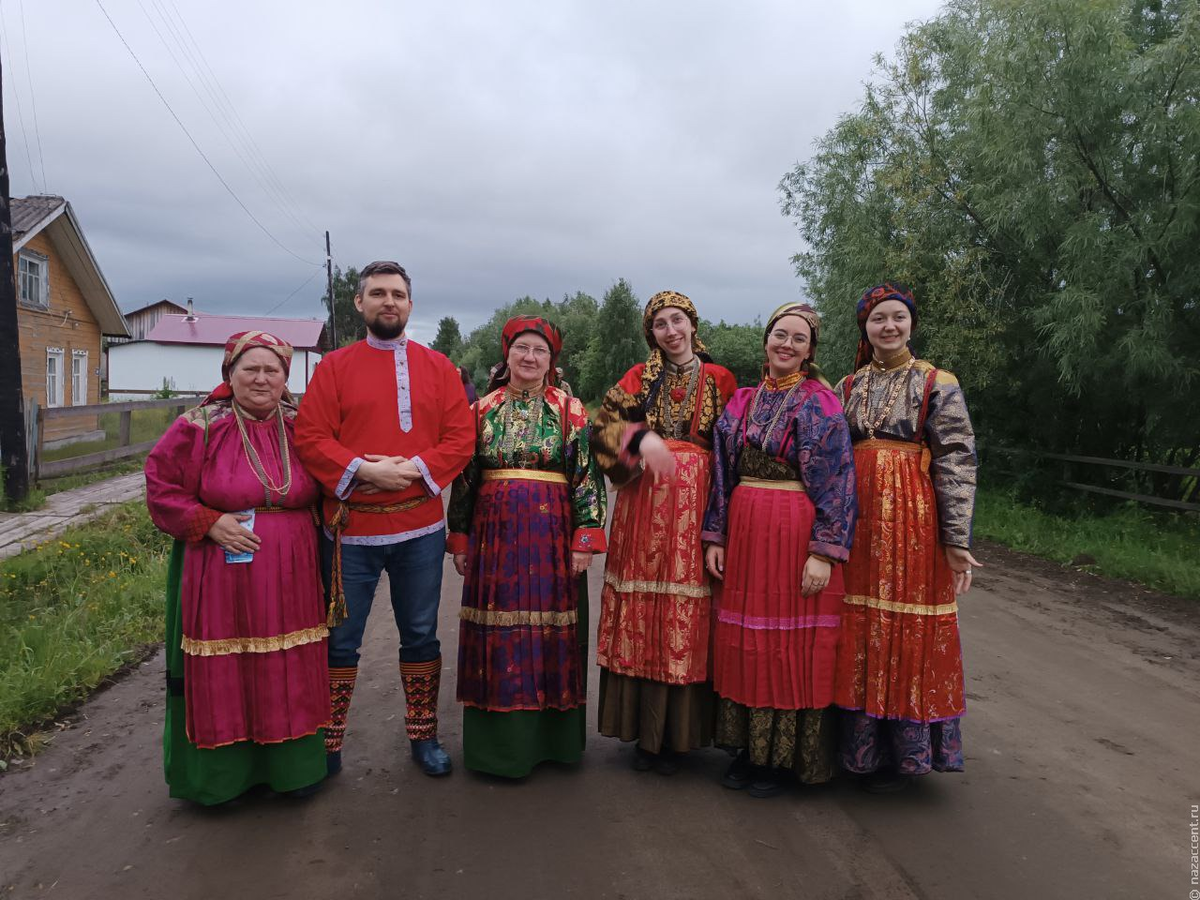 А именно – участие в горочной репетиции в местном Доме культуры и общение со студентами Санкт-Петербургской консерватории, которые приехали на этнографическую практику. Ночью на берегу реки будем варить уху, а пока после репетиции вместе со студентами идем по центральной улице села с песнями и танцами.