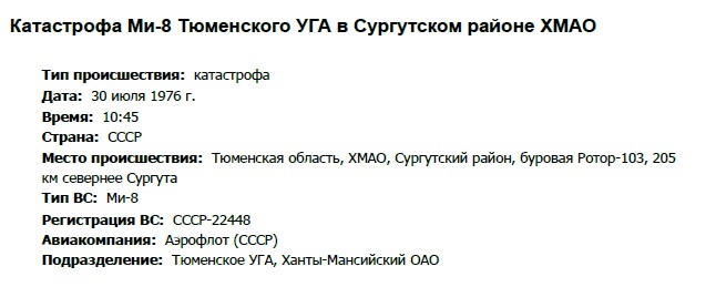 Трагедия Сургутских геологов 30 июля 1976 г. Катастрофа МИ-8