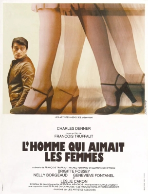 Мужчина, который любил женщин / L’Homme qui aimait les femmes. Франция, 1977. Режиссёр Франсуа Трюффо. Сценаристы: Мишель Фермо, Сюзанн Шиффман, Франсуа Трюффо. Оператор Нестор Альмендрос. Актеры: Шарль Деннер, Брижит Фоссе, Нелли Борго, Женевьева Фонтанель, Лесли Карон, Натали Бай и др. Премьера 27 апреля 1977. 1,0 млн. зрителей (Франция).