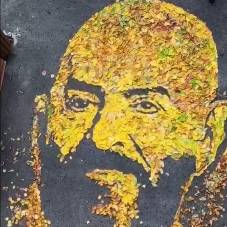 Портрет Шуфутинского из осенних листьев появился во дворе Уфы