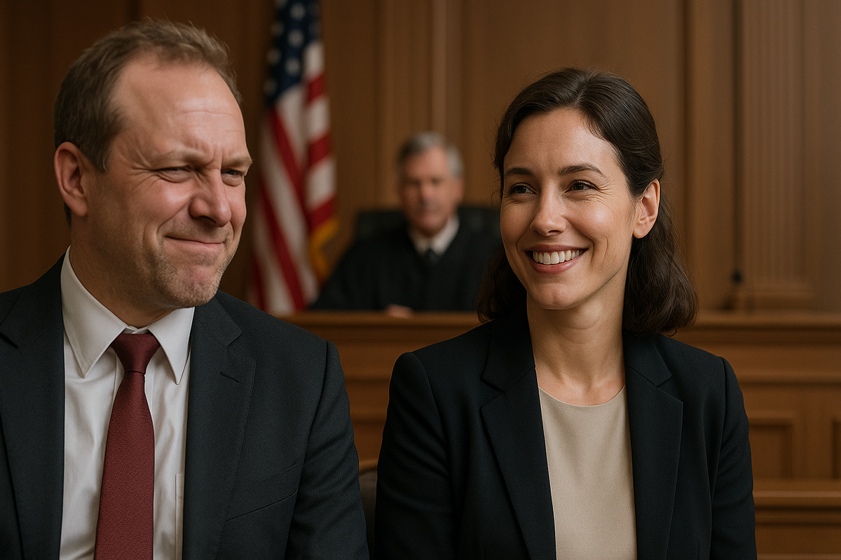 В суд он вошёл с гордо поднятой головой, готовый услышать последние слова судьи, подтверждающие его триумф. Но, открыв двери зала, он остолбенел. На первом ряду сидела она — его бывшая жена. Спокойная, уверенная и… улыбающаяся.