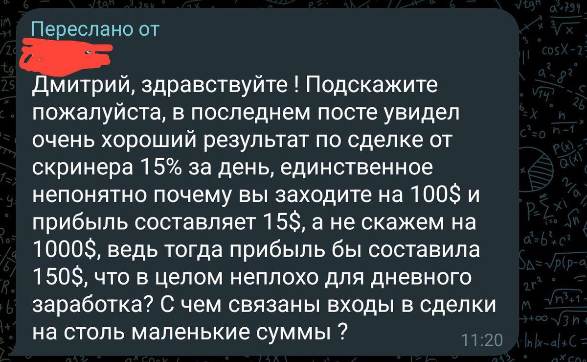 Размер входа в сделку — это всегда вопрос риск-менеджмента. Я специально показываю сделки на небольших суммах, чтобы акцент был не на размере прибыли, а на процентах доходности. Кстати, на канале есть много моих сделок и с большими суммами) Вот например 👉 последняя сделка, которую я выкладывал 📌 Пример: +15% — это одинаково работает и на 100$, и на 1000$, и на 10 000$. То есть сама стратегия сканера масштабируется, а капитал каждый выбирает под себя. Я предпочитаю демонстрировать результаты на «малых» суммах, чтобы любой мог понять: «Да, я тоже могу это повторить, даже если у меня депозит небольшой». 🔥 Если хотите убедиться, как это работает на практике — у вас есть возможность протестировать стратегию бесплатно и посмотреть реальные сигналы сканера. 👉 https://t.me/vkfinance_screener_bot vkfinance.ru