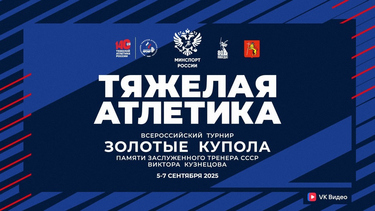 С 5 по 7 сентября* во Владимире в 28-й раз пройдет всероссийский турнир по тяжелой атлетике «Золотые купола» памяти заслуженного тренера России Виктора Петровича Кузнецова. Соревнования традиционно собирают спортсменов со всей страны - в этом году на помост выйдут 138 участников. Все соревновательные дни: 5 сентября, 6 сентября и 7 сентября - смотрите в прямой трансляции в группе ФТАР в VK Видео! Адрес проведения: г. Владимир, ул. Дворянская, 16 А, Дворец спорта "СК "Торпедо". *4 сентября - день заезда, 8 сентября - день отъезда.