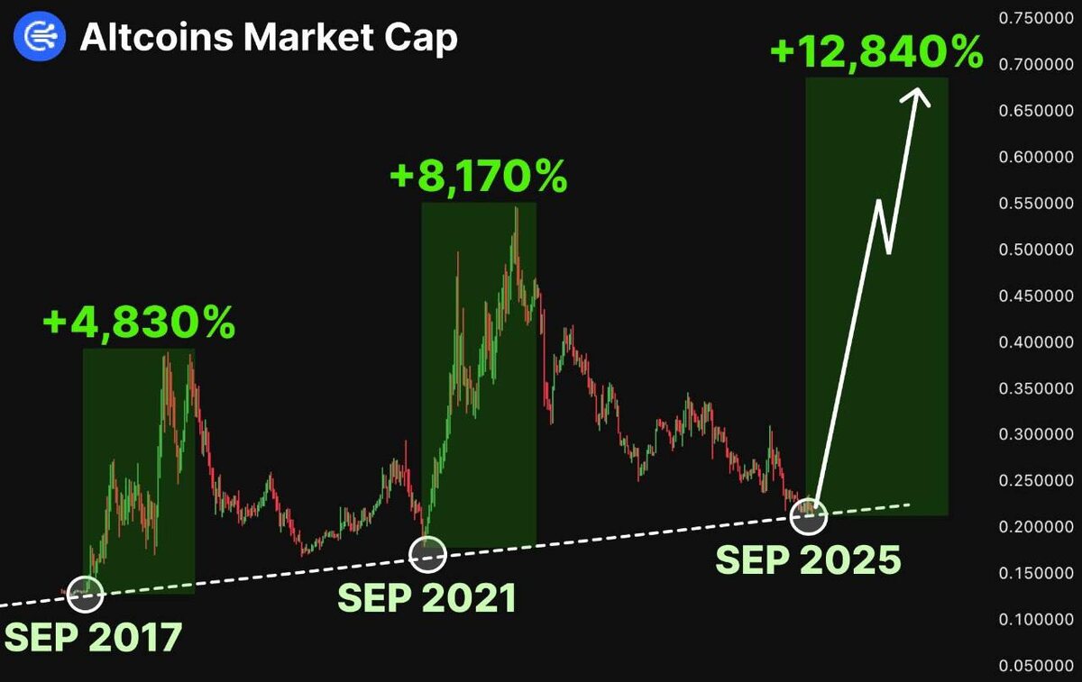 ТРИ АЛЬТКОИНА С ШАНСОМ НА НОВЫЙ ATH УЖЕ В СЕНТЯБРЕ 🚀 Аналитики выделяют три альткоина, которые могут обновить исторические максимумы уже в этом месяце. Рассказываю подробности! ✨ Ethereum (ETH) 🟢 Текущая цена: $4 366 (всего на 11% ниже рекорда в $4 956). 🟢Бычий импульс: Сохраняется положительная динамика. При удержании тренда возможен прорыв к $5 000 и установление нового ATH. 🔴Риски: Если импульс ослабнет, цена может скорректироваться до $4 000–$4 222. 📈 Ключевые уровни: Поддержка — $4 156–$4 345, сопротивление — $4 579. Закрепление выше $4 579 откроет путь к $4 956. 🥏 XRP 🟢 Текущая цена: $2,81 (ключевая поддержка — $2,74). 🟢 Сигналы роста: Облако Ишимоку указывает на возможный бычий импульс. При сохранении интереса инвесторов возможен рост на 29,8% до $3,66. 🔴 Риски: Пробой ниже $2,74 может привести к снижению до $2,54. Долгосрочный прогноз: В 2025 году цена может достичь $4,56, а к 2030 году — $18. 🔴 Tron (TRX) 🟢Текущая цена: $0,339 (отстаёт на 32% от пика $0,