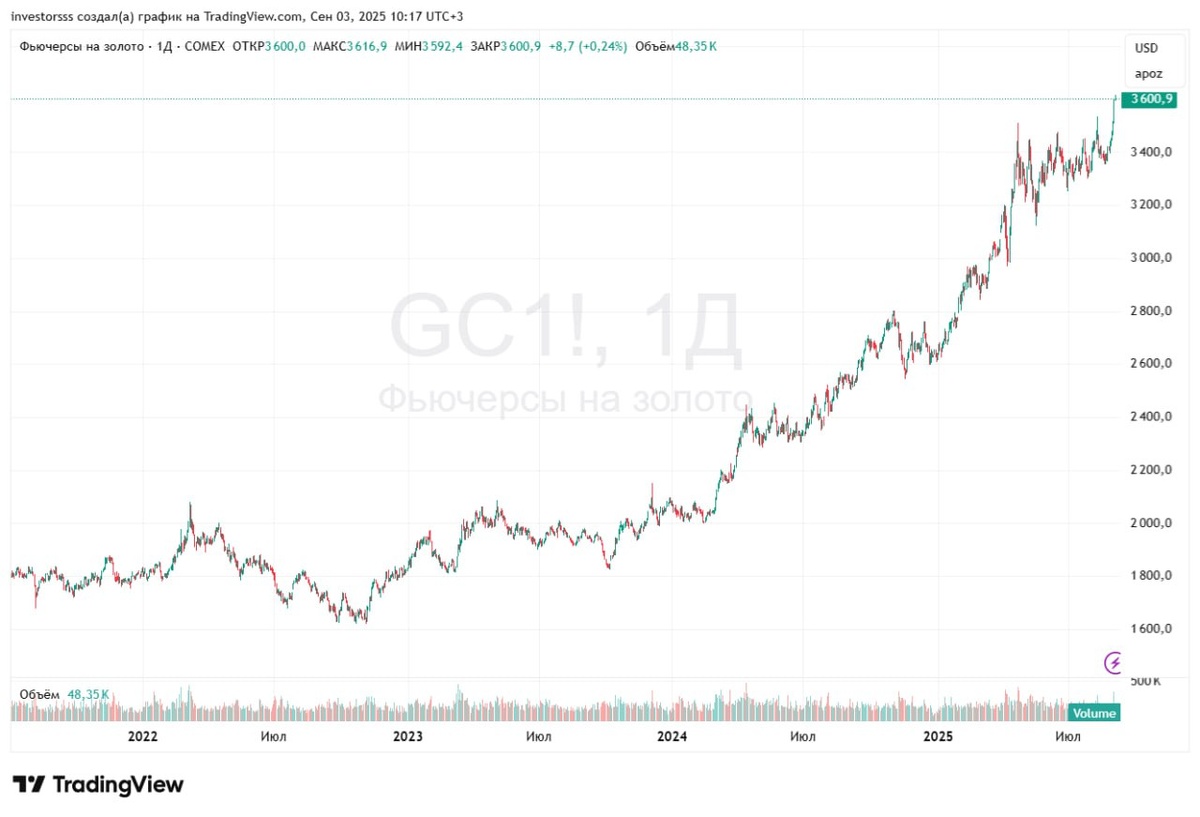 Про вечные ценности Про вечные ценности Цены на золото опять обновили исторический максимум, превысив отметку в $3600 за унцию, с начала года +37%. На чем так растёт? 1️ Перспектива снижения ставки ФРС на заседании 17 сентября. Чем ниже ставка и дешевле доллар, тем лучше для цен номинированных в $ активов. 2️ Сомнения по поводу независимости ФРС. Трамп очень хочет получить контроль над независимым ЦБ и без остановки злобно троллит Дж. Пауэлла, требуя резко снизить ставку. Это создает опасный прецедент, который может подорвать доверие иностранных инвесторов к американскому госдолгу. Отсюда – бегство в активы, которые принято считать защитными. 3️ Покупки золота в резервы мировыми ЦБ . Ключевую роль здесь может сыграть Китай, если ускорит распродажу американских трежерей. С $1,1 трлн (2011) уже сократили до $750 млрд. 4️ Обострение геополитики , тарифные войны и т.д. – всё это вызывает дискомфорт и желание прикупить чего-нибудь вечного. Причины ралли выглядят убедительно, и обнов