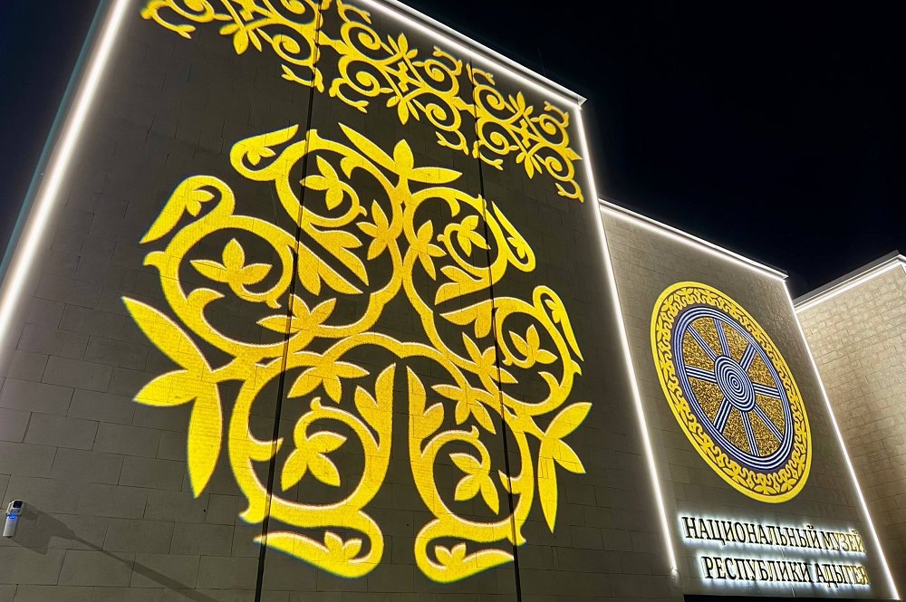 Фасад Национального музея Адыгеи украсили световой инсталляцией. В этом году одному из главных культурных центров региона исполняется 100 лет. Глава республики Мурат Кумпилов рассказал, что уже век учреждение служит главным культурным и научным центром, ответственным за сохранение материального наследия и изучение богатой истории региона. Он отметил, что коллекция музея представляет огромную ценность и состоит из более чем 340 тысяч единиц хранения, включая древние артефакты, предметы обихода и художественные ценности. Мурат Кумпилов напомнил, что масштабное обновление музея стало возможным благодаря федеральной программе поддержки. В ходе работ был отремонтирован фасад и внутренние помещения, заменены все коммуникации. Значительно модернизирована техническая база: закуплено новейшее экспозиционное оборудование, установлены современные системы климат-контроля, видеонаблюдения, противопожарной защиты и хранения экспонатов. Также инфраструктура пополнилась трехэтажным фондохранилищем, д