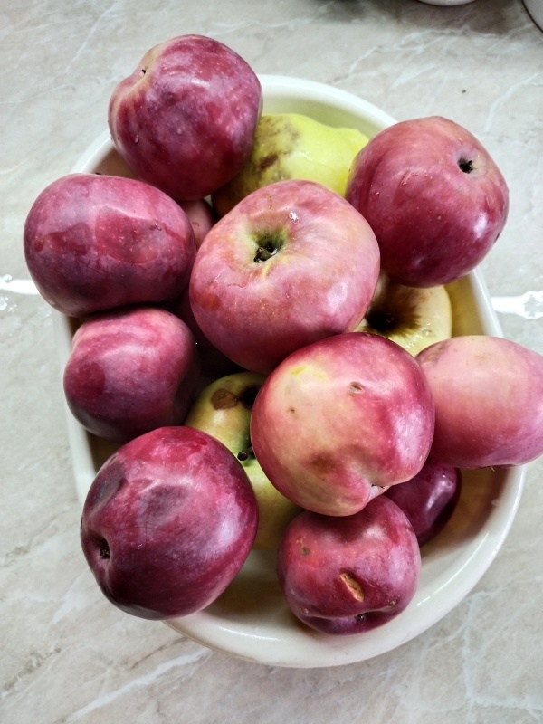 Люди добрые, подскажите, почему? Я по порядку. В воскресенье оказалась в гостях. Оттуда привезла яблоки - красивые-е... Падалица, конечно. Сегодня оставшиеся в живых яблоки сигнализировали: их надо срочно припутить. Срочно! Ну и... Бумаги для выпечки дома нет. Коврик я уже миллион раз использовала. Вспомнила, как в комментариях писали про "французскую рубашку": смазать форму маслом и припылить мукой. Решила сделать так - манки-то тоже нету! Ну самазала. Положила в ситечко чайную ложку муки. Припылила сначала бортики, потом дно. Оно всё в муке, правда, видно только толстые наслоения. Дальше всё, как обычно. Взбила яйца со щепоткой соли. Всыпала стакан сахара. Взбила. Всыпала стакан муки. Взбила. Высыпала в тесто яблоки. Перемешала, чтобы все ломтики были в тесте. Ещё раз оценила степень покрытия формы мукой. Кое-где добавила. Выложила массу в форму и отправила в печку. Держала час при 180 градусах. Красивый пирог получился! Прошлась ножом по бортикам, отделила пирог. Накрыла решёткой,
