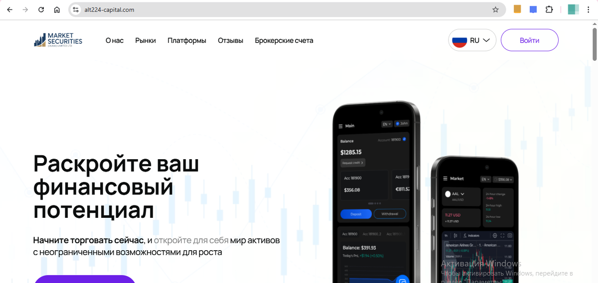 Alt224-capital.com, My.alt224-capital.com (Market Securities Dubai) позиционирует себя как международная инвестиционная компания, обещающая стабильный доход и персональное сопровождение клиентов. Тем не менее, перед принятием решения о сотрудничестве важно внимательно изучить доступную информацию. На своем сайте Alt224-capital указывает на возможность получения дохода от 10 до 25% в месяц, что значительно выше среднерыночных показателей. Клиентам предлагается персональный аналитик, который якобы работает за процент от прибыли, а также «золотые горы» в виде высоких и стабильных доходов без значительных рисков. Подобные заявления требуют критического анализа, так как в инвестиционной сфере гарантировать такую доходность без существенных рисков невозможно. В сети можно встретить множество комментариев от пользователей, которые жалуются на невозможность вывести вложенные средства, задержки в ответах службы поддержки и навязчивые звонки менеджеров. Некоторые пострадавшие утверждают, что пос