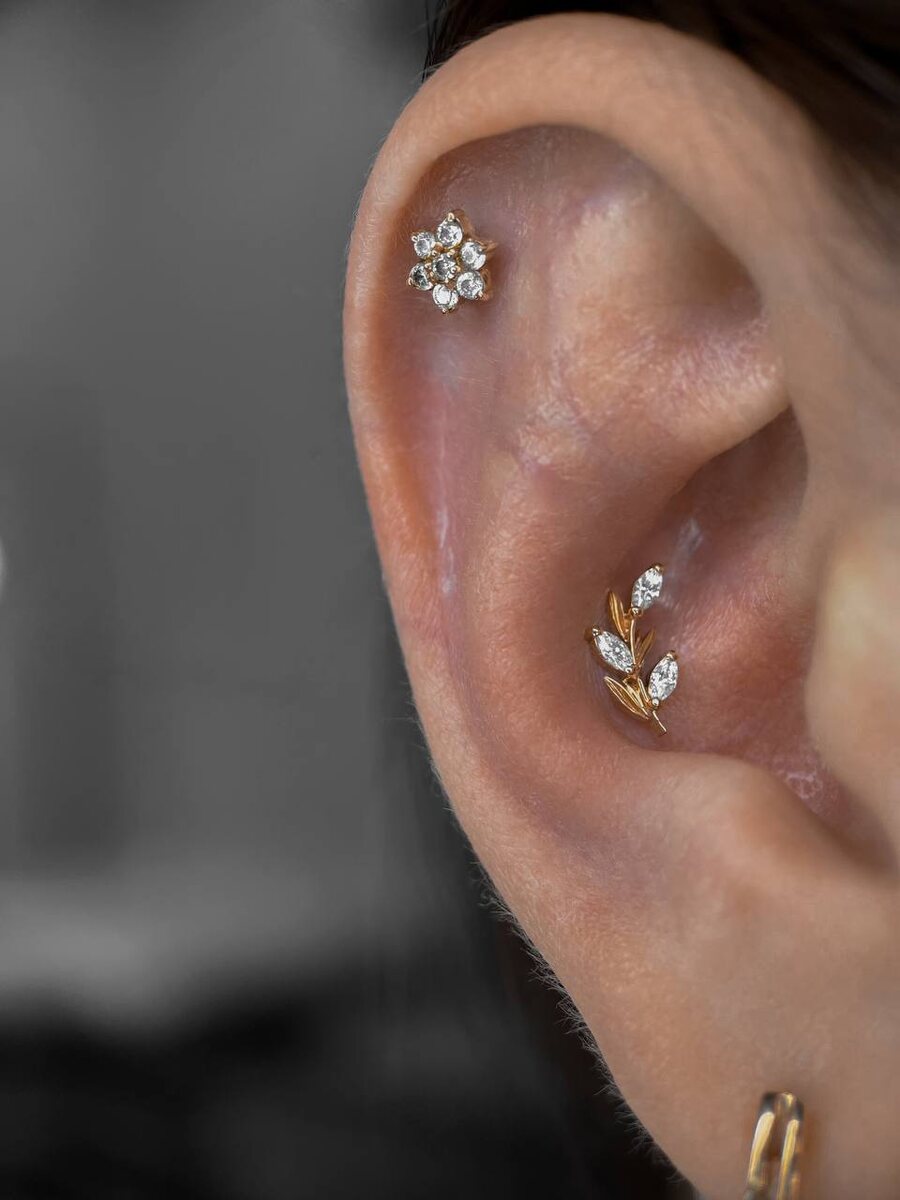Установили украшение Flora в розовом золоте в прокол конч🎀