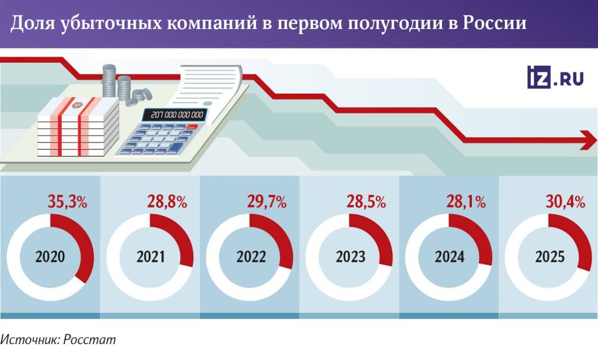 В первой половине 2025 года в России зафиксирован рекордный уровень убыточных компаний с начала пандемии