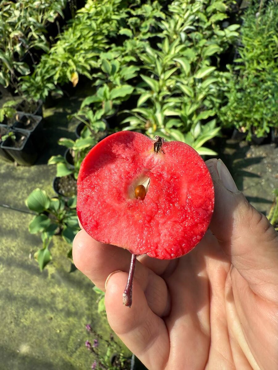 Друзья, вечер добрый ❤️. Снимала на прошлой неделе… выложу сейчас фото (немного не до этого было). Яблоня с красной мякотью - красномясая Редлав Сиерра. Реально красная внутри. Вариант на продажу при перестановке отпало, не удержались со Светланой решили куснуть . Осенний сорт, созревание у нее конечно вторая половина сентября. Мне зашло хрустящее, мелкозернистое, кисло-сладкое. Свете не зашло ей помягче и послаще. Как говорится на вкус и цвет …
