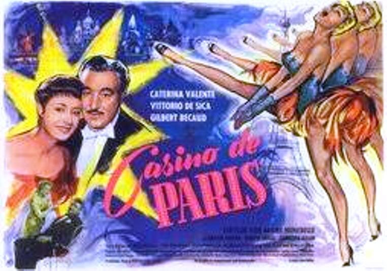 Парижское казино / Casino de Paris. Франция-Италия-ФРГ, 1957. Режиссер Андре Юнебелль. Сценаристы: Клод Барма, Жан Ален, Андре Юнебелль, Ганс Вильгельм. Актеры: Катерина Валенте, Витторио Де Сика, Жильбер Беко, Грета Вайзер и др. Музкомедия. Премьера: 31.10.1957. Прокат во Франции: 3,0 млн. зрителей. В завязке этой цветной музкомедии писатель и драматург, увидев в парижском казино выступление красавицы Катарины (Катерина Валенте), понимает, что это и есть героиня его новой пьесы… Эстрадные песни в исполнении Катерины Валенте (1931-2024) и Жильбера Беко (1927-2001), роскошный кордебалет, великий Витторио Де Сика (1901-1974) в главной мужской роли. Манящее название фильма… Понятно, что все это не могло не привлечь французов в кинозалы. И они пришли в количестве 3 миллионов. А к ним еще добавились миллионы зрителей в Италии и ФРГ, так как это была совместная постановка. Но, увы, по понятным причинам для советской публики «Парижское кино» оказалось недоступным… Киновед Александр Федоров Же