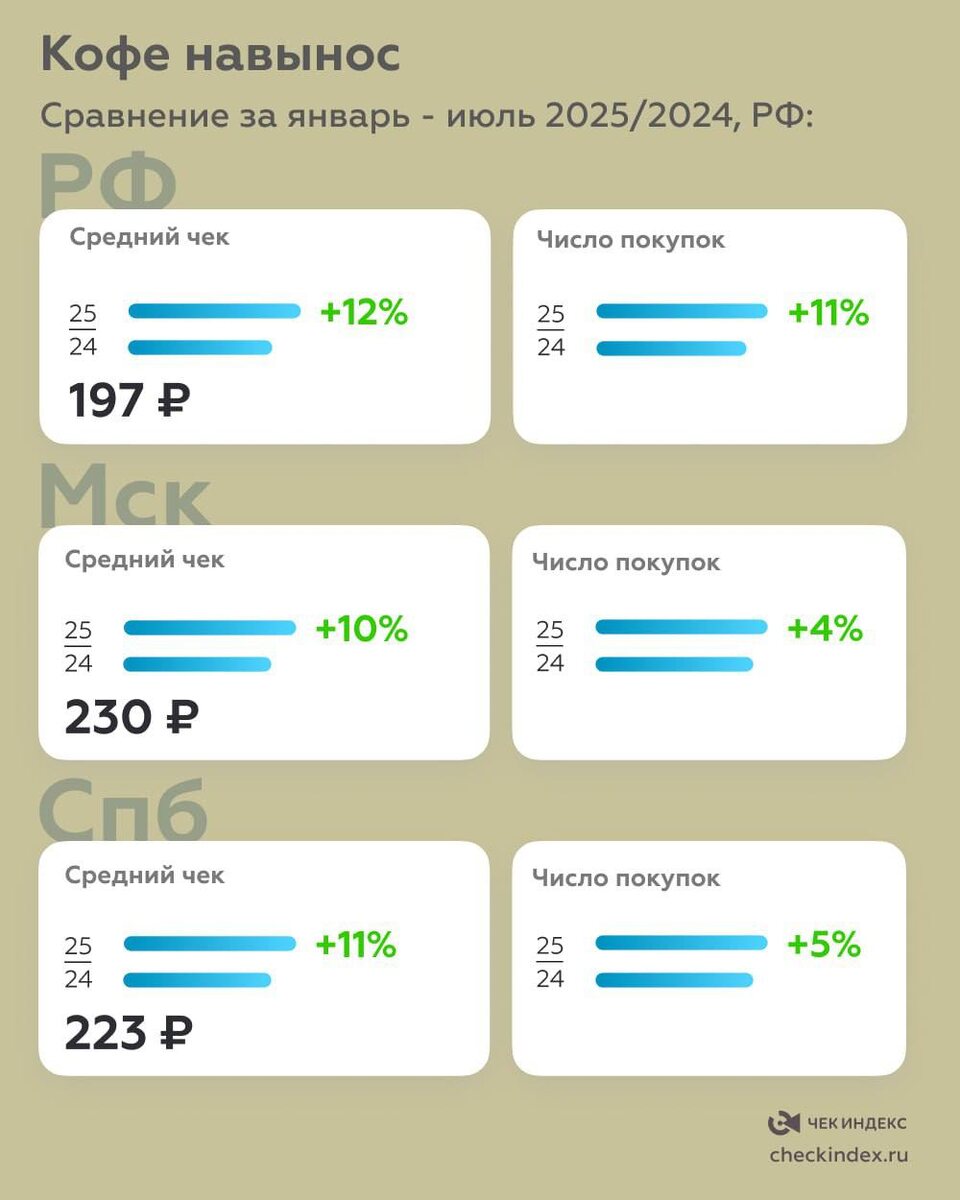⚡️За первые семь месяцев 2025 года потребление кофе навынос выросло на 11%, даже при росте цен на 12