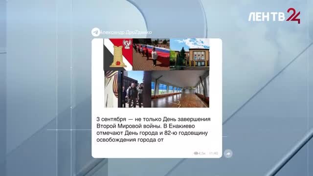 3 сентября в Енакиево отмечают День города и 82-ю годовщину освобождения города от немецко-фашистских захватчиков. Поздравления подшефной агломерации опубликовал в своем телеграм-канале губернатор Ленобласти Александр Дрозденко. Он отметил: «За время, которое наш регион шефствует над городом, мы перестали быть просто помощниками. Мы стали друзьями. Вместе сражаемся, вместе работаем, вместе восстанавливаем то, что разрушили уже современные нацисты». ЛенТВ24 присоединяется к поздравлениям. С праздником вас, уважаемые жители Енакиево!