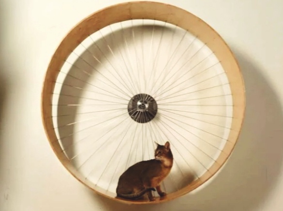 Как вариант кто-то рассматривает покупку специального бегового колеса для кошки. Конечно обычно такую вещи покупают в места, где кошек много: приюты, котокафе и т. д.
