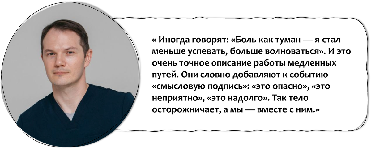 Мы привыкли считать: чем быстрее сигнал — тем сильнее впечатление. Однако с болью всё гораздо сложнее и интереснее. Представьте себе двух курьеров, работающих внутри нашего тела. Один — быстрый спринтер: он мгновенно доставляет острый, чёткий сигнал и тут же исчезает. Другой — неторопливый почтальон: он приходит чуть позже, но задерживается дольше, успевает поговорить с Вами о погоде, планах на выходные, расспросить о семье. Именно этот медлительный посланец зачастую решает, станет ли боль нашим постоянным спутником. Представьте себе процесс приготовления еды. Разогреть еду в микроволновке — это быстрая боль: короткая и локальная, вы сразу понимаете, где именно. А вот томление в мультиварке — это вторая волна, тягучая и расползающаяся. Её приносят медленные C-волокна, у которых нет «изоляции», поэтому они спешить не могут. И в этой медлительности скрыт парадокс: у мозга появляется время не просто заметить сигнал, а вплести его в общий узор — связать с мыслями, воспоминаниями, страхами