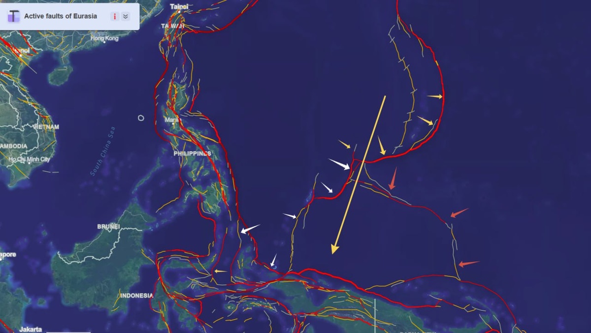 В ответ на пост Трассируются не только Марианские острова, но и примыкающие участки: Каролинская плита, север Папуа Новой Гвинеи и часть рифтовой зоны по северной Индонезии (см. фото 1-3). Общий вектор смещения ОСТИ - юго-запад. ======== Not only the Mariana Islands are traced, but also adjacent sections: The Carolina Plate, the north of Papua New Guinea and part of the rift zone in northern Indonesia (see photos 1-3). The general displacement vector of the CSTIs is southwest.