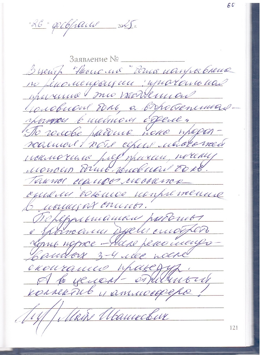 26 февраля 2025г. В центр «Аксиома» была направлена по рекомендации: изначальная причина – это постоянная головная боль, а второстепенная – грыжи в шейном отделе. По голове работа пока продолжается, хотя серия массажей исключила ряд причин, почему может быть головная боль. Также сеанс массажа сняли большое напряжение в мышцах спины. По результатам работы с грыжами будем смотреть чуть позже – после рекомендованных 3-4 месяца после окончания процедур. А в целом – отличный коллектив и атмосфера! Майя Ивашкевич.