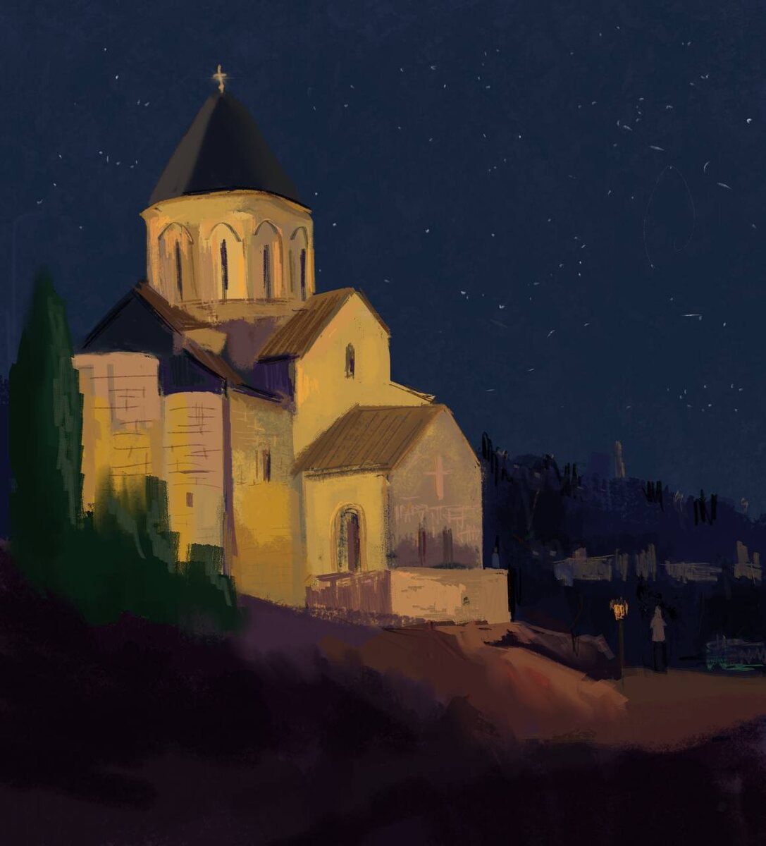 Вчера рисовала в самолете по памяти и фото. Это храм Метехи в Тбилиси #nikazart
