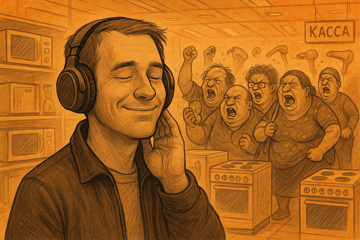 Наушники — это дело такое. Я не меломан, Баха, Бетховена и Моцарта я знаю слишком смутно и вообще. Я бы блеснул большим знанием фамилий классиков, но больше трёх фамилий мне гуглить уже лень. Я в наушниках только разговариваю, считай, по телефону. Мне любые подойдут. Начал искать. Смотрю. Ну, на маркетплейсах прямо вот видно по фотографии, что эти наушники, безусловно, стоят 200 рублей, но качество у них такое, что я вижу через экран, что мне ими будет пользоваться больно. В этот момент я себя почувствовал просто каким-то экстрасенсом, типа определяю качество наушников по фотографии… Лазал я-лазал, искал-искал, дорогие, конечно, красивые, но как же душит жаба. Да и денег нет. Да и жаба душит. Да и зачем они мне вообще, я же не Бетховен, чтобы… чтобы что? Чтобы Бах? Бах-бабах? Ладно. Надеюсь, вы поняли.