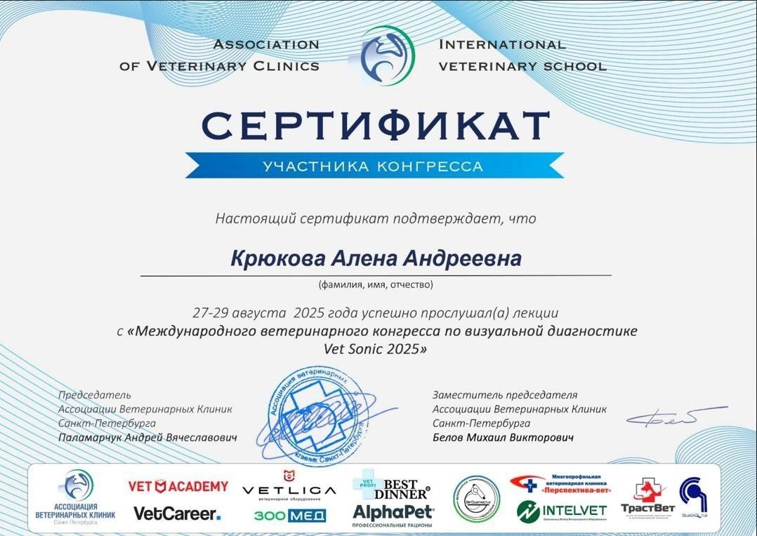 Поздравляем нашего доктора УЗИ диагностики Крюкову Алëну Андреевну с успешным прохождением очередного обучения
