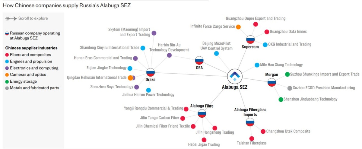 Британская The Telegraph «разоблачает» китайские военные поставки в Россию: Газета The Telegraph установила, что китайские компании напрямую поставляли детали и материалы на сумму не менее 47 млн фунтов стерлингов российским фирмам, подвергшимся санкциям за производство беспилотников, в период с 2023 по 2024 год. В этот период Москва создавала масштабную логистическую инфраструктуру для своей отечественной программы по производству беспилотников. По данным анализа глобальных торговых записей, проведенного компанией Sayari, занимающейся анализом данных и рисками, опубликованного Telegraph, почти четверть стоимости этих поставок — 10,7 млн фунтов стерлингов — была отправлена находящимся под санкциями российским фирмам, связанным с производством иранских беспилотников-камикадзе «Шахед», работающих в особой экономической зоне (СЭЗ) в городе Алабуга . Товары, напрямую экспортируемые Китаем в Россию, включают авиационные двигатели, микрочипы, металлические сплавы, объективы для камер, сте