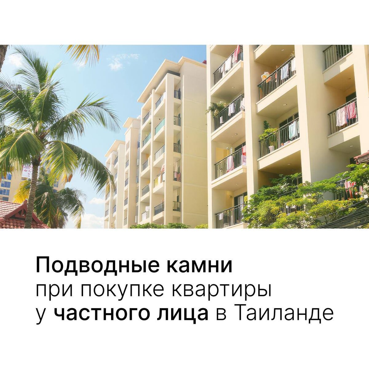 Подводные камни при покупке квартиры у частного лица в Таиланде Покупка квартиры на вторичном рынке кажется проще: объект уже построен, можно сразу заехать. Но именно здесь чаще всего встречаются неприятные сюрпризы, о которых важно знать заранее. Рассказываем о рисках при покупке вторички. 1️⃣Долги по коммуналке Перед продажей владелец обязан погасить все задолженности перед управляющей компанией. Без справки об отсутствии долгов сделку в Земельном департаменте не зарегистрируют. Но иногда продавец скрывает долги, а покупатель узнает об этом в последний момент. Решение: всегда требовать официальную справку из управляющей компании до подписания договора. 2️⃣Налоги и сборы при продаже В Таиланде расходы на регистрацию сделки делятся между сторонами — но не всегда поровну. Продавец должен оплатить подоходный налог и сбор за перевод права собственности, но на практике часть этих расходов перекладывают на покупателя. Если не оговорить условия заранее, итоговая сумма может неприятно уд