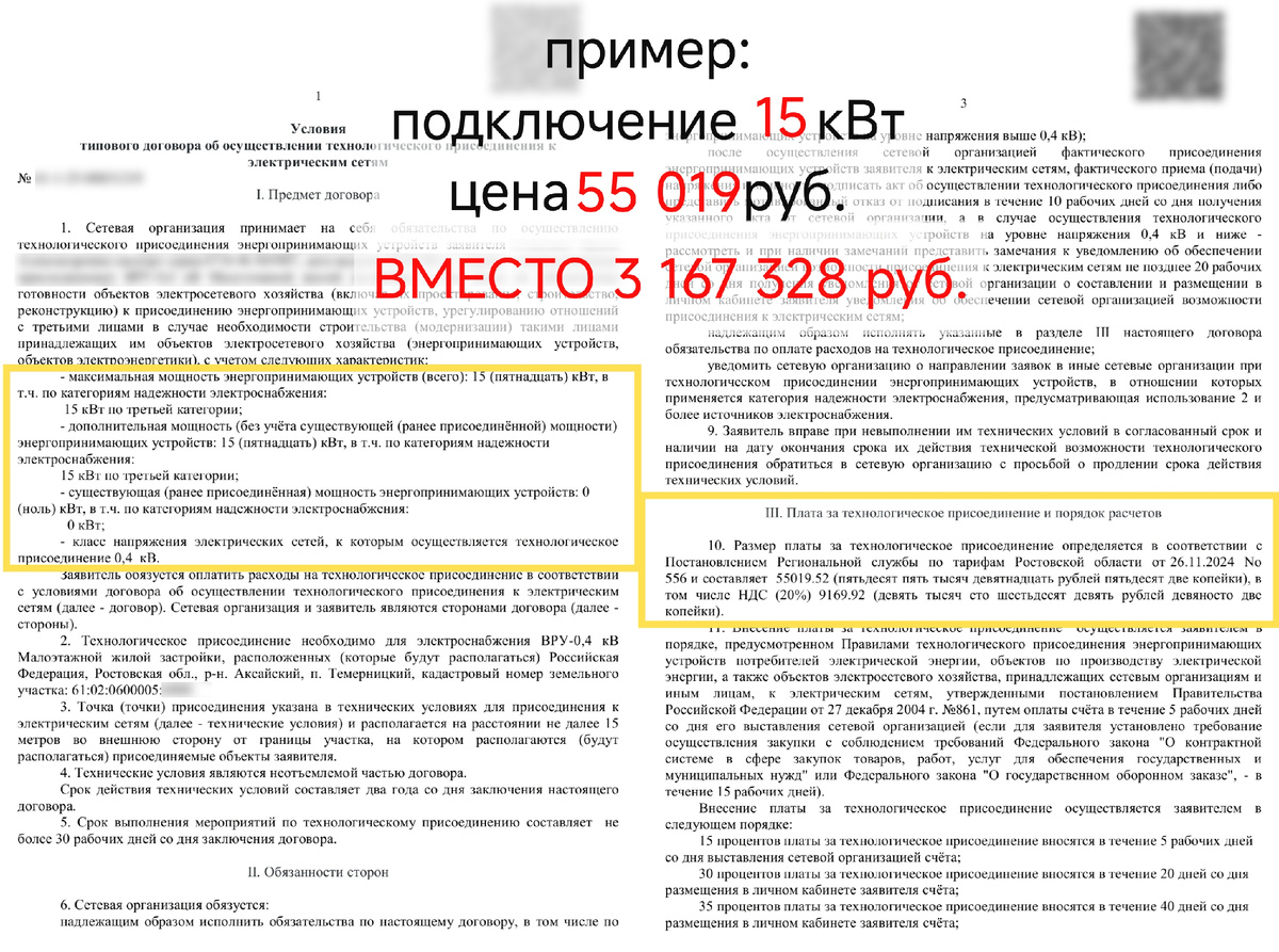 Сэкономили на электричестве больше 3 🍋 миллионов рублей 😵💫 Вы только представьте вместо 3 000 000 рублей счёт вышел всего в 55 000 руб за 15 кВт!!! Мало того, что сэкономили огромную сумму денег заявителю, так ему ещё и сделают все работы менее, чем за 30 рабочих дней! Изначально заявитель самостоятельно обратился в сетевую организацию, где получил счёт в 3 167 328 руб за 15 кВт. После этого он обратился к нам в ЛЭК (ЭЛЕКТРИЧЕСКАЯ КОМПАНИЯ) за помощью. И мы смогли добиться суммы в 55 019 руб и срок подключения составил всего 30 дней. Мы ЛЭК, благодаря знанию всех законов и постановлений, знаем как законно снизить стоимость подключения электричества. Наша цель - помочь вам! Помочь: ✅снизить стоимость технологического присоединения к электросетям, ✅взять на себя всю бюрократию и снять с вас эту головную боль, ✅максимально сократить сроки. ❌В сетевой организации вам никто не скажет о том, что вы можете подключить электроэнергию гораздо дешевле. У них нет интереса рассказывать вам о