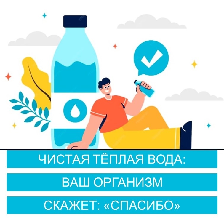 • "Чистая вода – залог здоровья": Это не просто слова, это истина, проверенная веками. Теплая чистая вода – это ваш личный детокс - программа, которая работает круглосуточно. Она помогает вымывать из организма все, что ему не нужно, оставляя место для здоровья и энергии.
