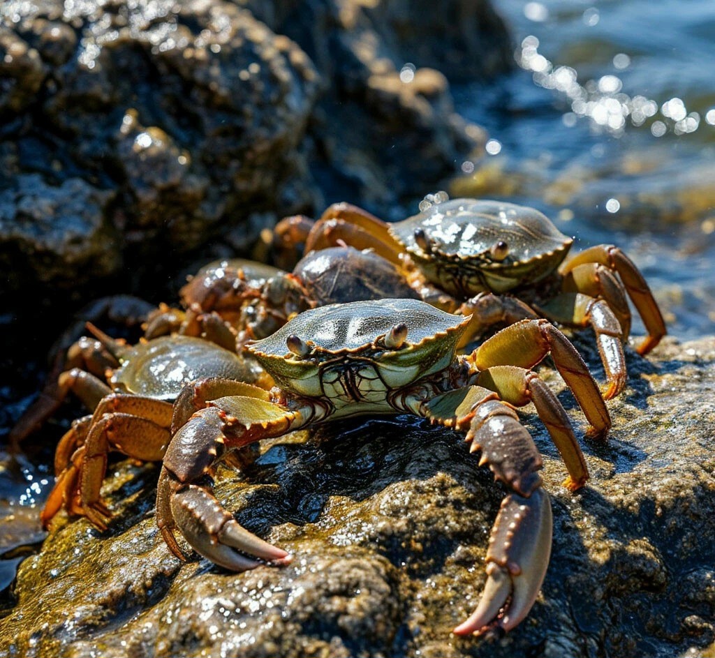 Друзья, с вами Дима и Жасмини 🐕 Сегодня мы 🐕 вам расскажем о Крабах 🦀 Черноморских! Итак - Крабы Черноморские: Невероятные соседи по побережью 🦀** Знакомьтесь — самые загадочные и невероятные жители нашего побережья! Речь о черноморских крабах. Они не такие гигантские, как камчатские, но от этого не менее интересные. Давайте узнаем о них больше! **Какие они бывают?** В Черном море обитает более 20 видов крабов! Среди самых известных: * **Каменный краб:** Самый крупный (панцирь до 10 см), сильный и ловкий. Любит глубину и каменистое дно. Его клешни — настоящая мощь! * **Травяной краб:** Быстрый и проворный, предпочитает мелководье и водоросли. Отличается зеленоватым окрасом, который отлично маскирует его в траве. * **Крабы-плавуны:** Отличные пловцы! Задние лапки у них похожи на весла, что помогает им молниеносно удирать от опасности. * **Краб-невидимка (или краб-паук):** Мастер маскировки. Он покрывает свой панцирь водорослями и мелкими ракушками, становясь практи