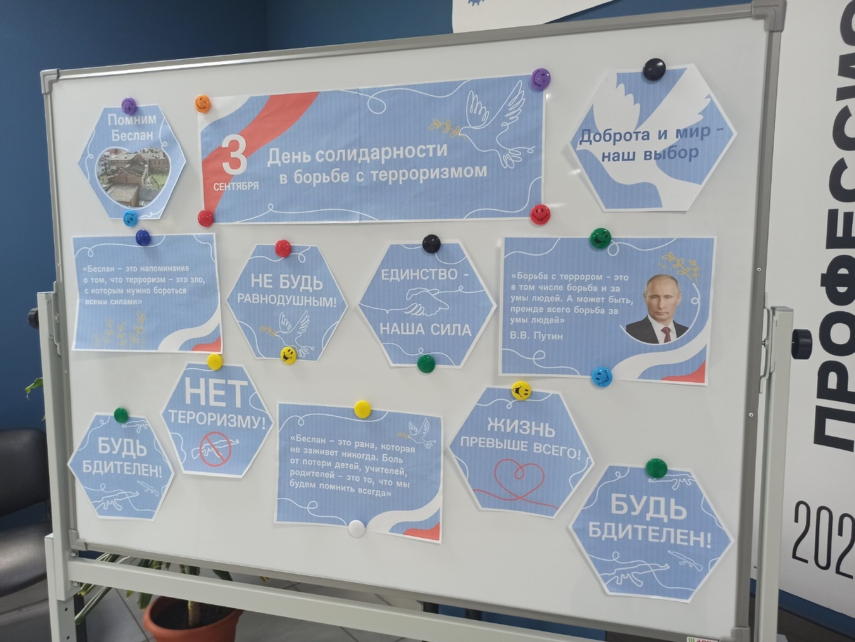 БЕСЛАН - МЫ ПОМНИМ! 📅 3 сентября в Стерлитамакском политехническом колледже в рамках проекта "Профессионалитет" национального проекта "Молодежь и дети" была организована информационная выставка, посвящённая трагедии в Беслане. На ней мы узнали о событиях того ужасного дня и почтили память жертв. 🕯 Беслан - это трагедия, это горе, которое напоминает нам о той угрозе, которая может исходить от террористических организаций. 🙏🏻Беслан - мы помним! #стерлитамакскийполитехническийколледж #СоюзМаш #СоюзМашБашкирия #профессионалитет02 #Профессионалитет #ИРПО #85ЛетСПО #СПО #МолодёжьИДети #НацпроектМолодёжьИДети #МедиаЦентрСТР #СПОмедиа #терроризмугрозаобществу #терроризмунет #антитеррор #мыпомним