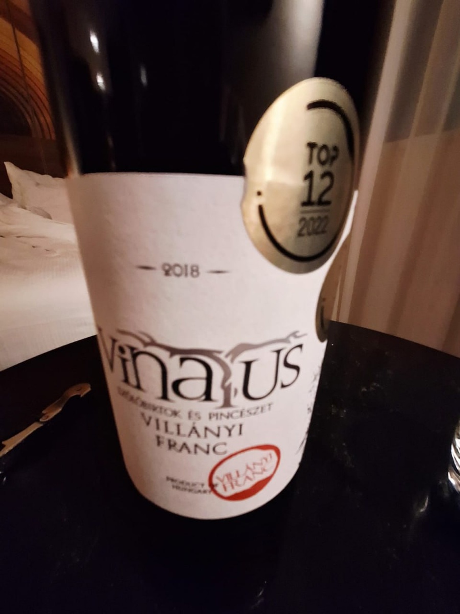 Vinatus - Villányi Franc 2018 Фотография вышла так себе, прямо скажем. Но тут главное - суть. Многие люди мира вина считают, что на юге Венгрии, около деревеньки Виллань находится место, где получается один из лучших в мире каберне франов. Вот прям - идеальный терруар, чтобы выращивать этот сорт винограда. Поэтому, приехав в Венгрию, любитель вина просто обязан его попробовать! В самом Будапеште мы были ненадолго, поэтому в первый же вечер решили отведать тот самый топовый каберне фран из Виллани. У нас на столе вино, которое вошло в 12 лучших каберне франов Венгрии. Урожай 2018 года. Единственно о чем я жалею, вспоминая эту дегустацию - что у нас не было декантера, чтобы вино насытилось кислородом. Дело в том, что по мере его употребления оно менялось на глазах, просто расцветая. Так что декантер и минимум час ему нужны, чтобы все стало классно. Сначала оно показалось зажатым и немного компотным, но уже минут через 20-30 начало преращаться в то, что действительно претендует на топ 1