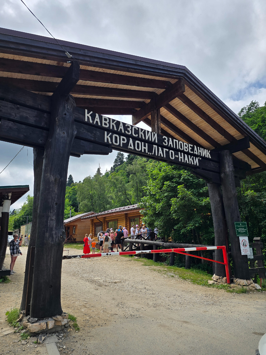 Новый день включил на голубом небе солнце. Группа позавтракала, разложила по личным рюкзакам общее снаряжение и, погрузившись в автобус, который значительно опоздал по времени, отправилась на кордон "Лаго-Наки" Кавказского государственного природного биосферного заповедника. Закрыв все пропускные формальности, навьючились и отправились в путь. Из-за поздней заброски и приличной очереди на КПП на маршрут вышли поздно. Змеилась меж отлитых зеленью холмов, причудливых каменных глыб и карстовых воронок тропа. Далеко за горизонт разбежались и укрылись голубым маревом Кавказские горы. Усладой для глаз роились вокруг пейзажи. Разбавляя усталостью эстетическое удовольствие, добрались до вершины Нагой-Кош (2090 м), где устроили привал с перекусом и потрясающим видом. Отвесной стеной сорвались в пропасть скалы, у подошвы которых растеклось каменное море курумника. А на небе серая туча, пряча Фишт и Оштен, нависла угрозой дождя. Поскудничал ветер. Заторопились. До урочища "Инструкторская щель" о