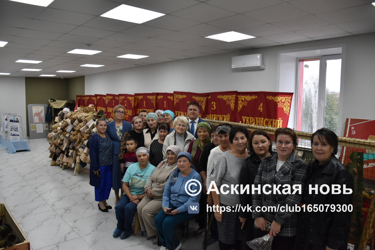 Затем состоялся визит в Аскинский историко-краеведческий музей, где почетных гостей встретила главный методист Анзиря Ганиева. Здесь представлена экспозиция работ заслуженного художника РСФСР, народного художника БАССР Федора Александровича Кащеева. Анзиря Мукарямовна рассказала о бесценной коллекции работ великого мастера, которые были переданы в дар дочерью художника, предметах быта, которые окружали художника при жизни. Музей еще на стадии оформления и поэтому пока в одном из залов действует волонтерский пункт по плетению маскировочных сетей. Сотрудники музея и волонтеры объединили свои усилия в этом благородном деле, вкладывая не только свой труд, но и надежду на спасение человеческих жизней. Волонтеры рассказали о том, какую помощь они оказывают нашим бойцам и даже подарили гостям душицу, которую собирают специально для наших ребят. Травяные сборы не только напоминают им о доме, но и поддерживают их здоровье на фронте.