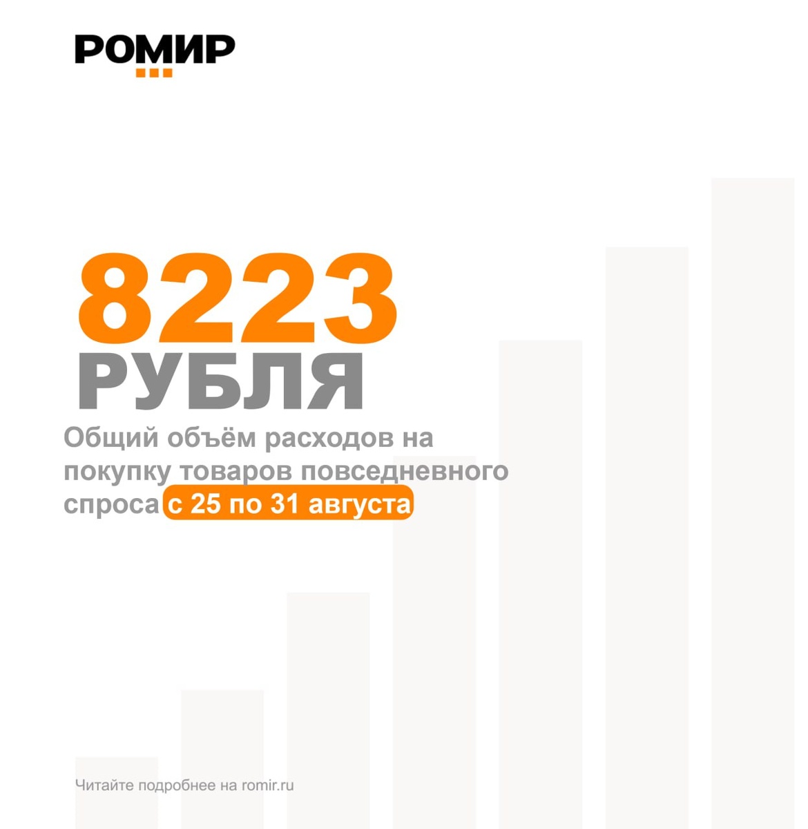 8223 рубля потратила в среднем на продукты питания и товары повседневного спроса среднестатистическая российская семья на неделе с 25 по 31 августа, что на 146 рублей (1.8%) меньше, чем неделей ранее. Относительно аналогичной недели прошлого года объем недельных расходов вырос на 834 рубль или на 11.3%. Одной из возможных причин небольшого снижения текущей недели может служить сезонная динамика: окончание летних отпусков и активное подготовление к началу учебного года, когда семьи перераспределяют бюджеты в пользу школьных товаров и учебных расходов, что временно влияет на структуру и размер средних трат. #индекснедельныхрасходов #индекспокупательскойактивности @m_romir