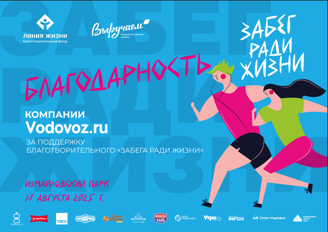 31 августа в Измайловском парке в 11-й раз прошел ежегодный благотворительный «Забег ради жизни». Организатор мероприятия – фонд «Линия Жизни». Компания Vodovoz.ru традиционно выступила одним из партнеров акции. В мероприятии приняли активное участие медийные персоны. Разминку перед забегами провели: чемпионка мира по бодифитнесу Юлия Ушакова, двукратная олимпийская чемпионка и трехкратная чемпионка мира по биатлону Ольга Зайцева. Диджей Максим Чернигов и специальные гости поддерживали праздничную атмосферу. В спортивном городке работали яркие фотозоны и полевая кухня, где участники могли отдохнуть и подкрепиться. Помимо традиционных дистанций в 1 км, 5 км, 10 км, на забеге был представлен и «полумарафон» 21 км – в честь 21-летия фонда «Линия Жизни». Для самых маленьких прошел бесплатный игровой старт на 300 м вместе с героями «Смешариков». Vodovoz.ru, как обычно, позаботился об участниках и гостях. Были организованы бесплатные «водные» точки, где все желающие могли поддержать себя кач