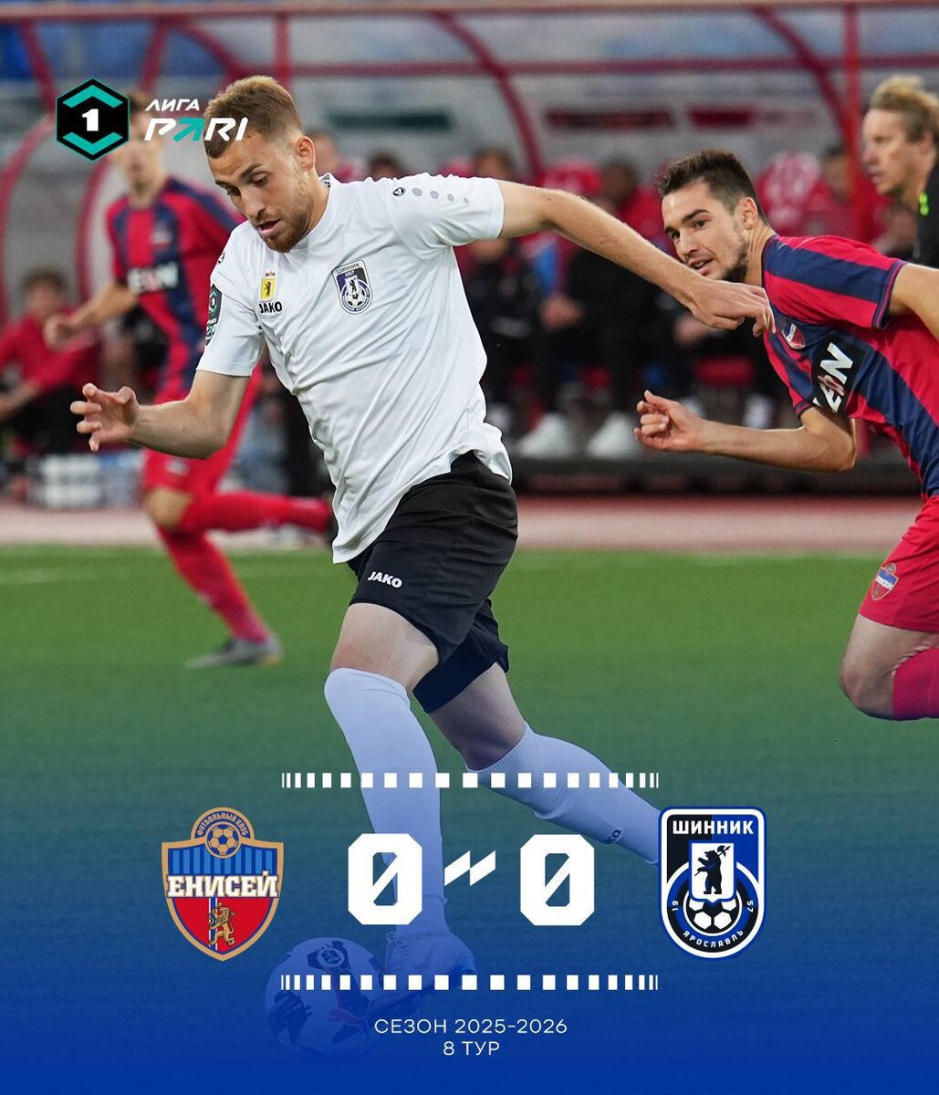 ⚽️ «Енисей» и «Шинник» сыграли вничью 0:0 в матче 8-го тура Первой лиги