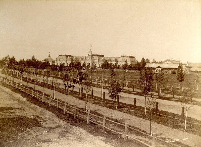 Панорама вокзала и его привокзальной площади. Снимок конца XIX в. (фото Н. Терехова). Фотография на паспарту, из сборника «Виды Екатеринбурга».