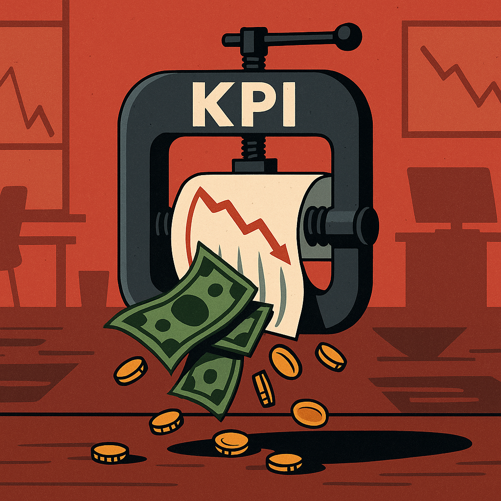 Потому что выполняется план по KPI, а не выручки или прибыли. Менеджеры перестают продавать и начинают закрывать метрики. Это игра. Причём с правилами, где побеждает не тот, кто принес деньги, а тот, кто красиво отчёт сдал. — Почему у тебя 0 продаж, если ты выполнил все KPI?