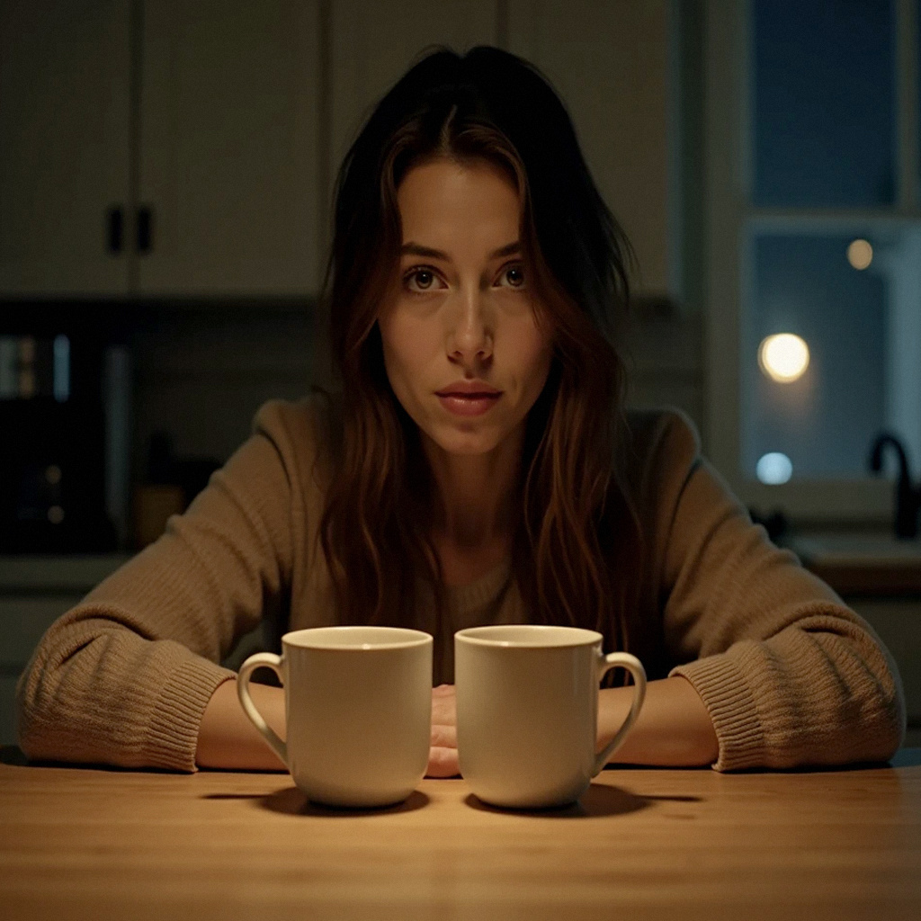 Алёна достала из шкафа две чашки. Поставила на стол. Потом убрала одну обратно.