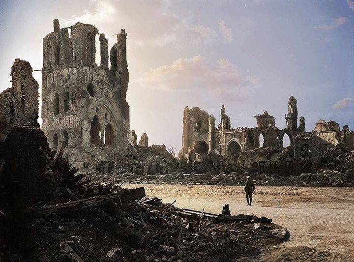 Австралийский солдат среди развалин Ипра, Бельгия, 3 сентября 1917 года