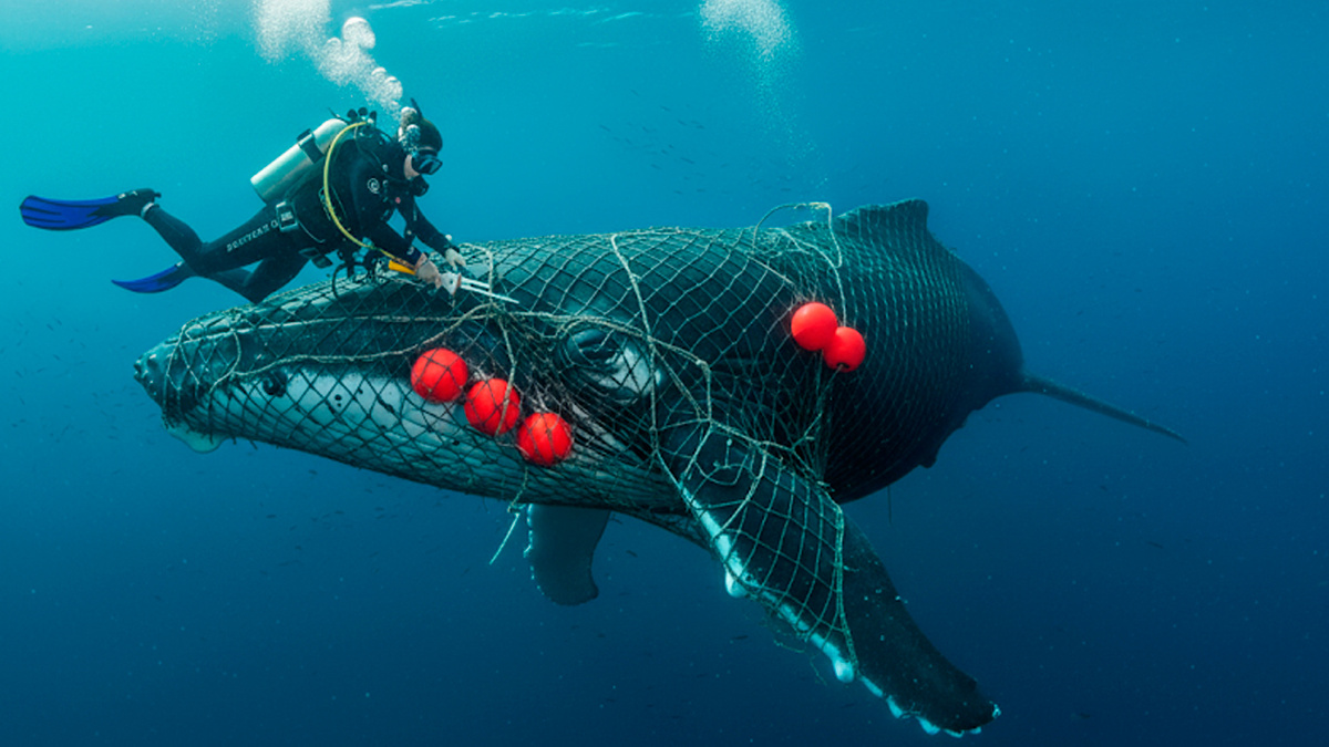 Перед ними был гигантский горбатый кит. Он двигался рывками, тяжело дышал и словно звал на помощь. И только при ближайшем рассмотрении стало ясно: огромный морской исполин оказался пленником смертельной ловушки из рыболовных сетей, канатов и массивного якоря.
