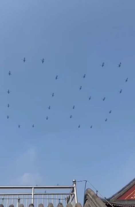 Небо помнит. Вертолеты пролетели над Пекином в виде цифры 80 на параде победы